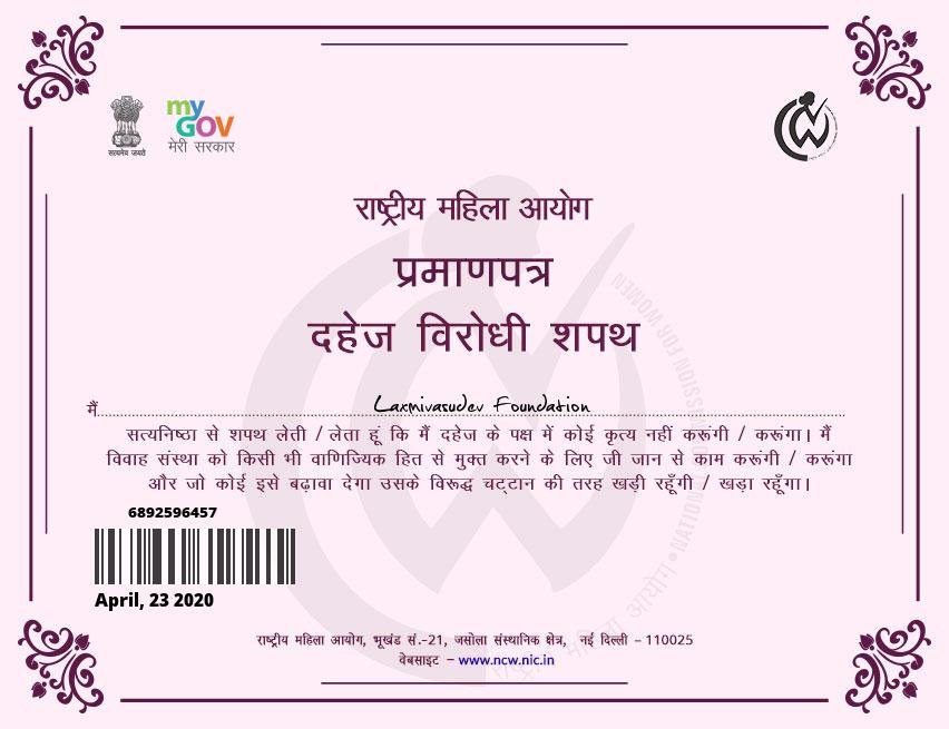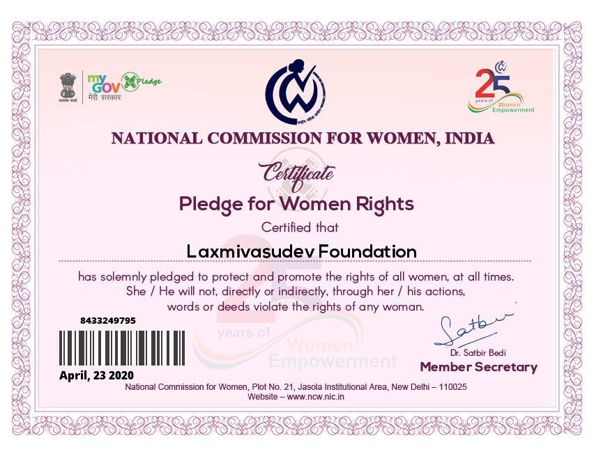 राष्ट्रीय महिला आयोग द्वारा प्रमाण पत्र, भारत
