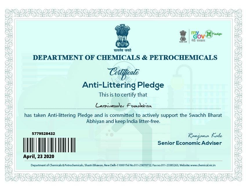 रसायन और पेट्रोकेमिकल्स विभाग, भारत द्वारा प्रमाण पत्र