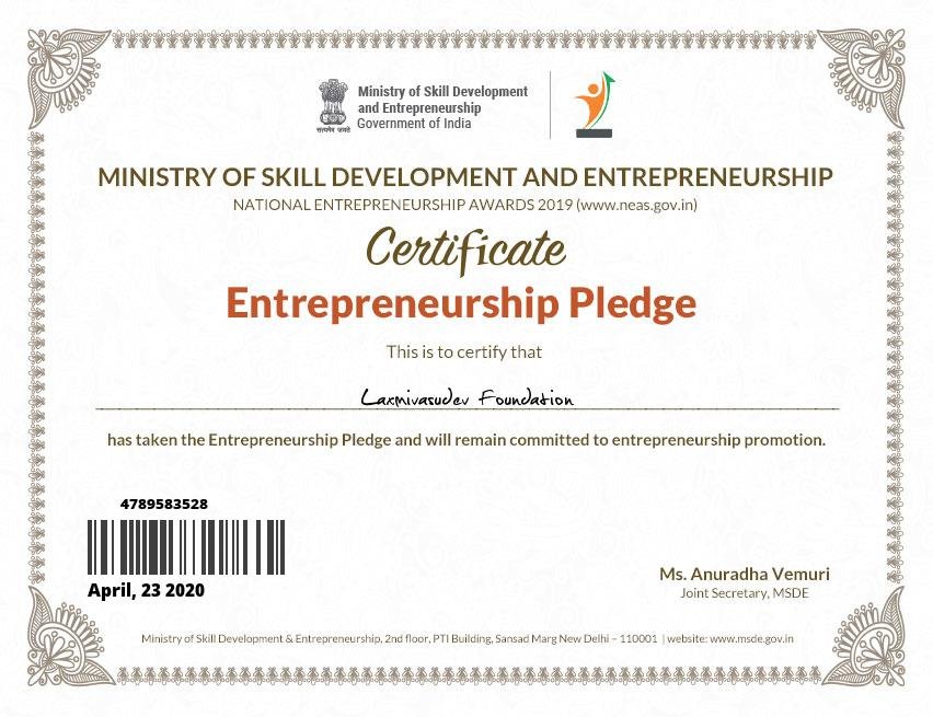 कौशल विकास और उद्यमिता मंत्रालय, भारत द्वारा प्रमाण पत्र
