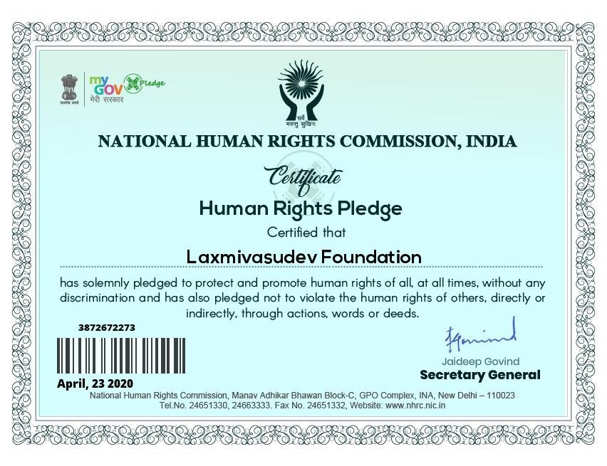 राष्ट्रीय मानवाधिकार आयोग, भारत द्वारा प्रमाण पत्र